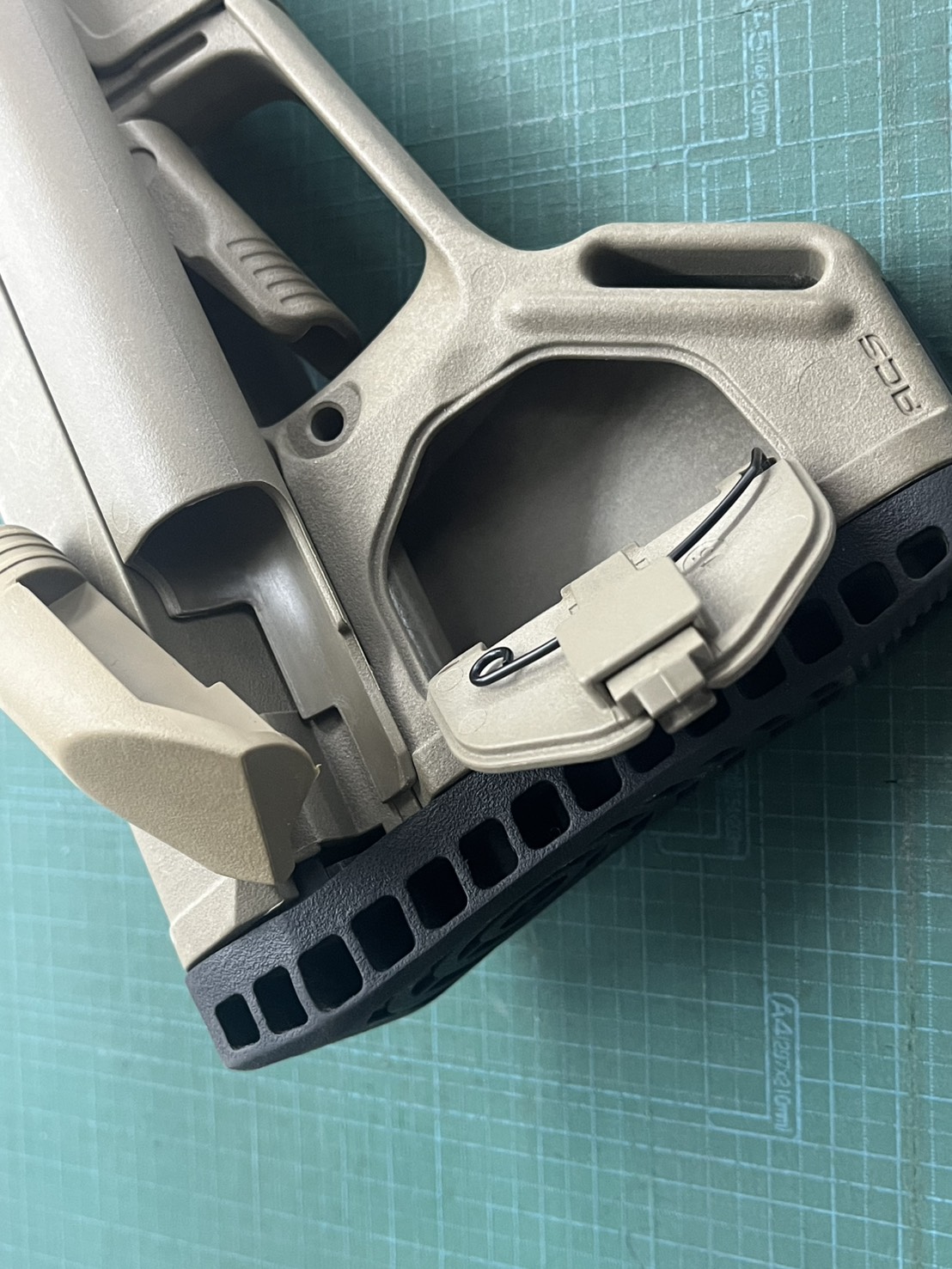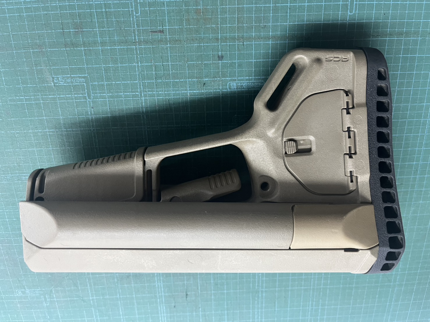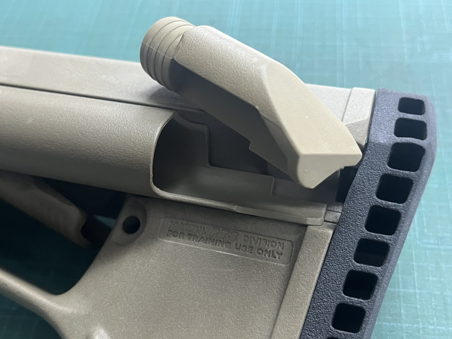 写真ではわかりづらいですが、現MAGPULより若干濃いめのフラットダークアースカラーです。