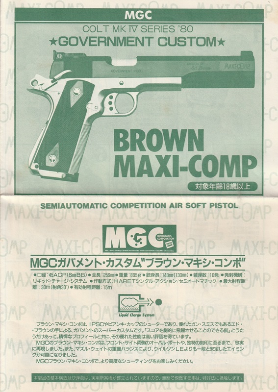 取扱説明書 MGC GM6 ブラウン マキシコンプ ガスガン